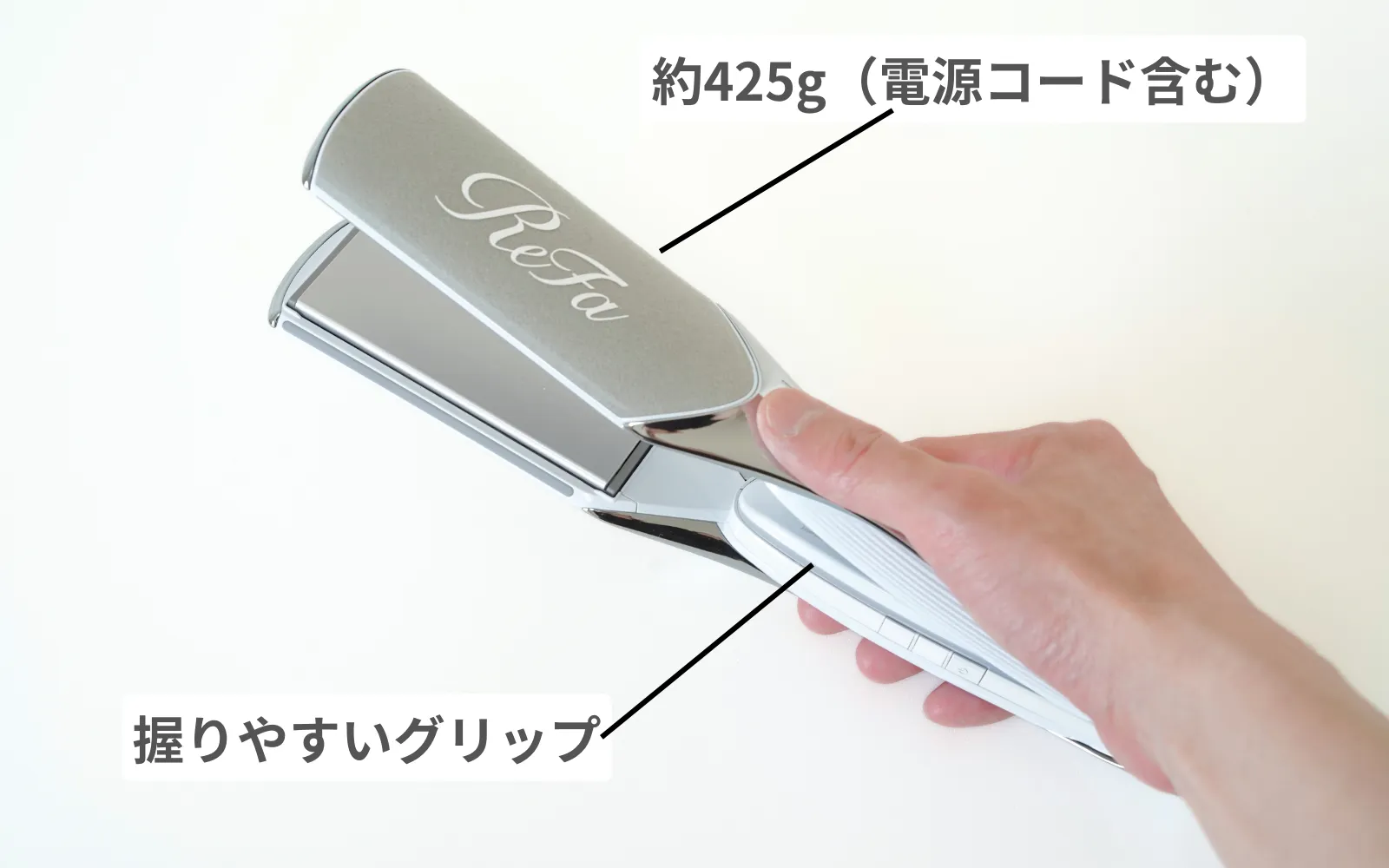 リファパワーストレートアイロン プロは、38mmワイドプレートを採用したモデルのため、やや重量感があるのは事実。
